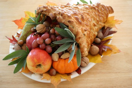 It’s very important to plan ahead with centerpieces. You must decide the scale of your project, materials, edibility, theme, etc. Your standard cornucopia weave basket can be found at a neighborhood hobby store such as Michael’s. You can get decorations to fill it or line it with a napkin and place edibles inside. However, if you decide to make an edible cornucopia container, read on! The following instructions will show you have to make a cornucopia out of bread.
